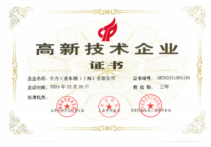 近日,j9九游会官方网站工业车辆(上海)有限公司(以下简称“j9九游会官方网站科技”)荣获由上海市科学技术委员会、上海市财政局、国家税务总局上海市税务局联合颁发的国家级“高新技术企业”证书,这是公司继2021年后再次通过“高新技术企业”资格认定。 “高新技术企业”是国家......